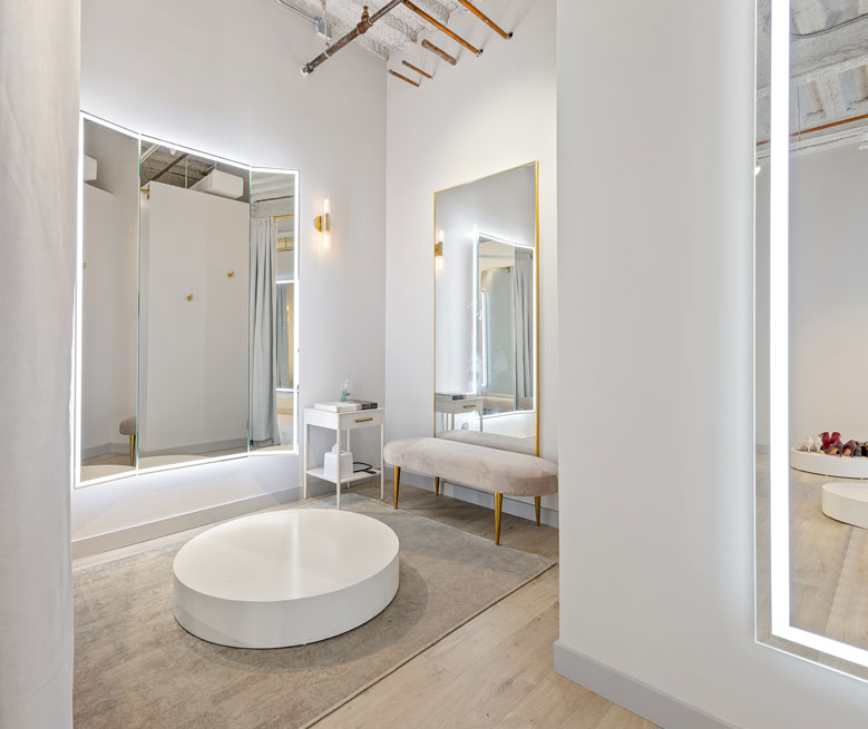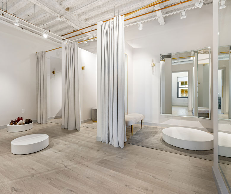 We curate our studios with a minimalist design, natural lighting, a calming scent and music to evoke a sense of comfort and sophistication for our clients. Our private spacious fitting rooms allow you to try on your garments comfortably and enjoy a unique and personalized tailoring experience.