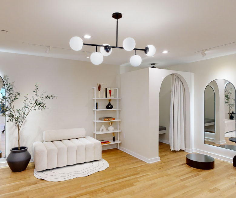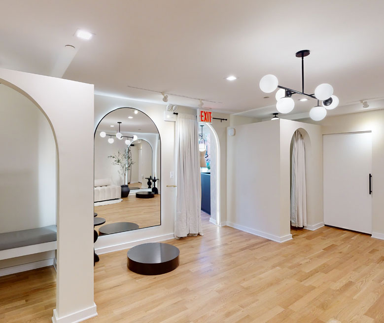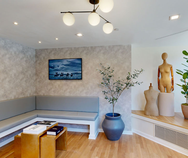We curate our studios with a minimalist design, natural lighting, a calming scent and music to evoke a sense of comfort and sophistication for our clients. Our private spacious fitting rooms allow you to try on your garments comfortably and enjoy a unique and personalized tailoring experience.