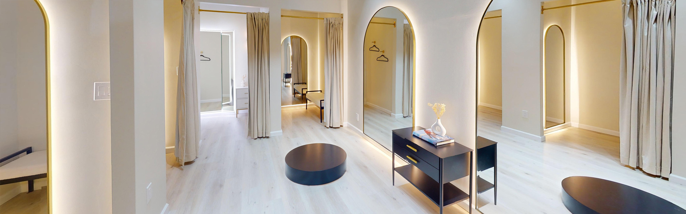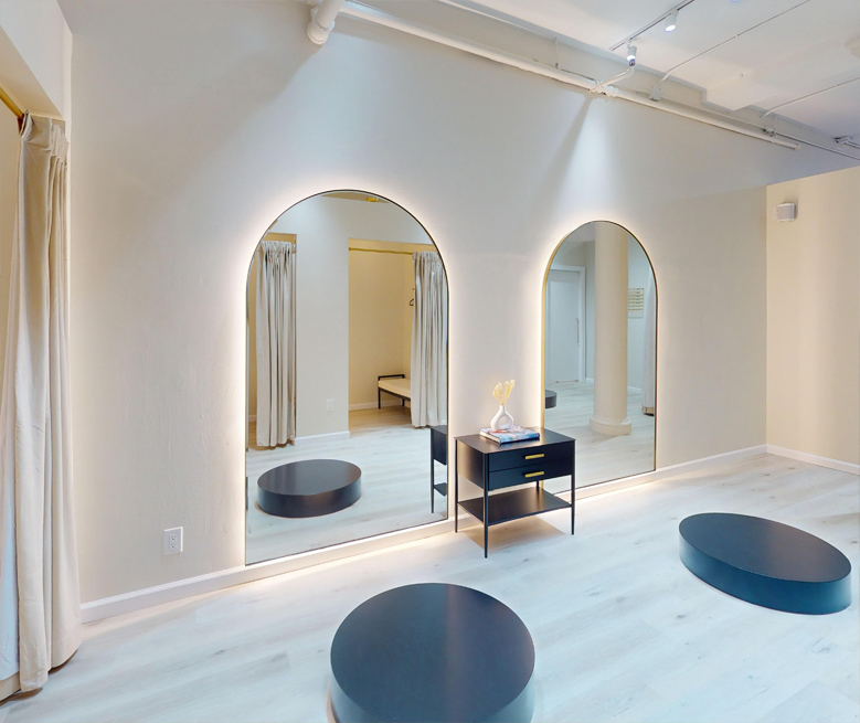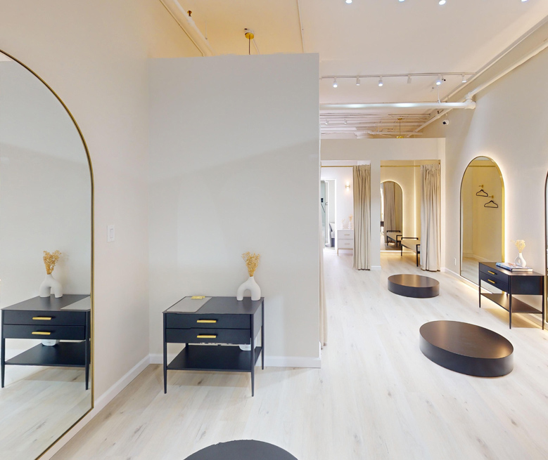 We curate our studios with a minimalist design, natural lighting, a calming scent and music to evoke a sense of comfort and sophistication for our clients. Our private spacious fitting rooms allow you to try on your garments comfortably and enjoy a unique and personalized tailoring experience.